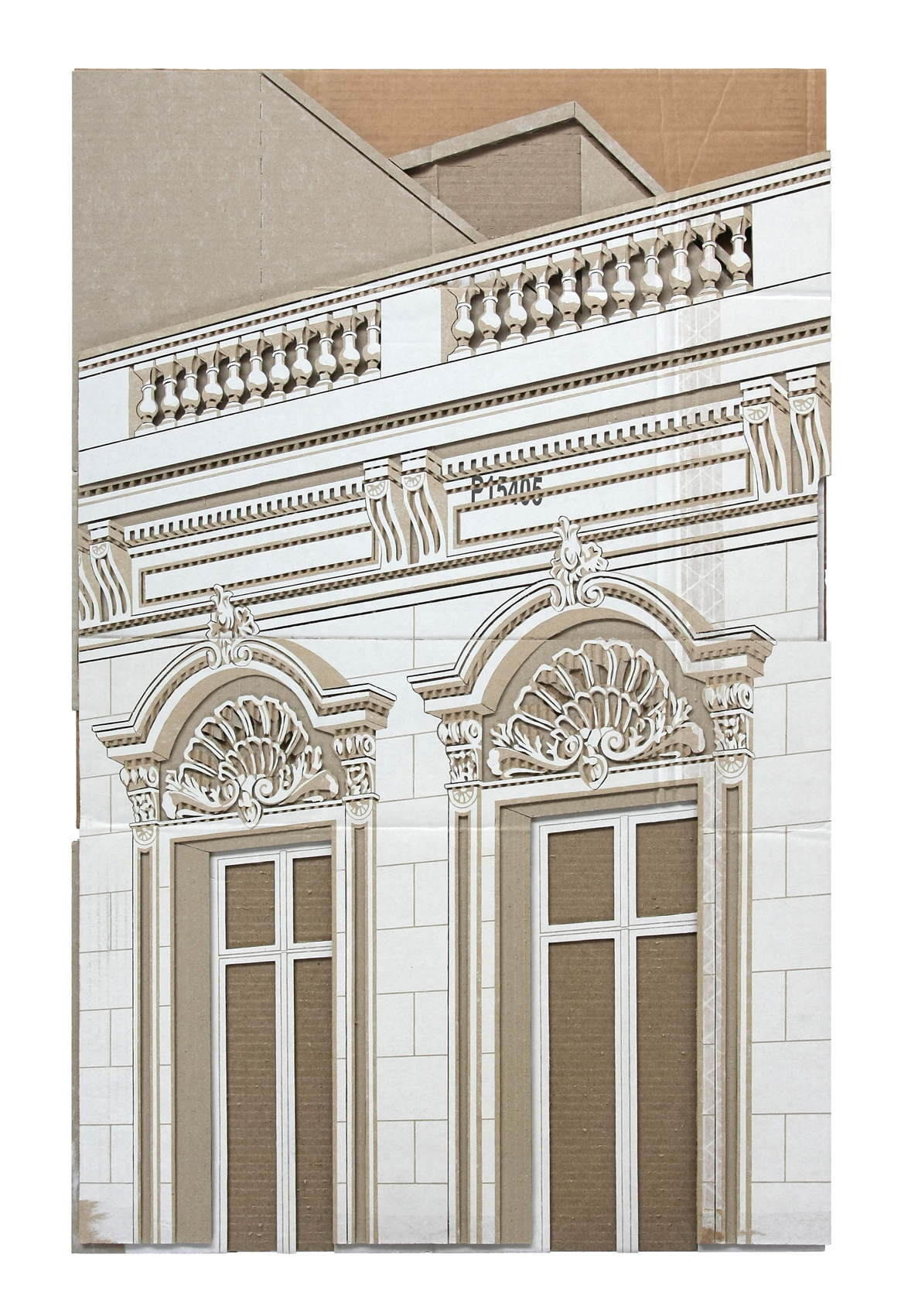 3. Unter das Loch des Gitarrenrumpfs ein ca. 6 cm breites und 2 cm tiefes Stück Wellpappe kleben.